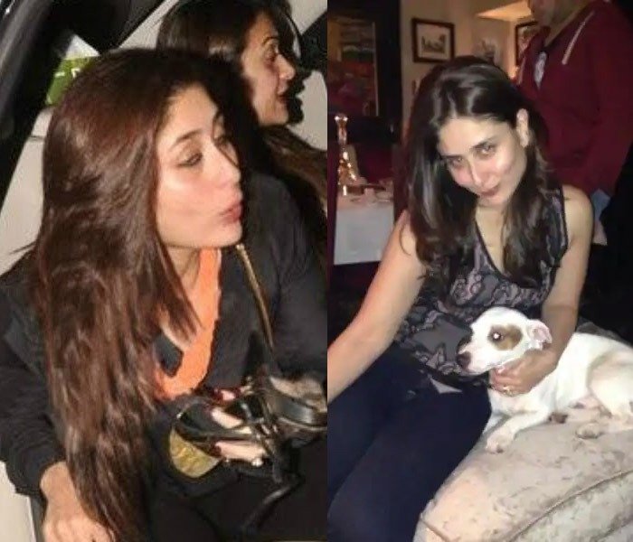 This is a picture of a party where Kareena is seen posing in a very unique style with a dog. Her eyes are intoxicating which are telling everything.