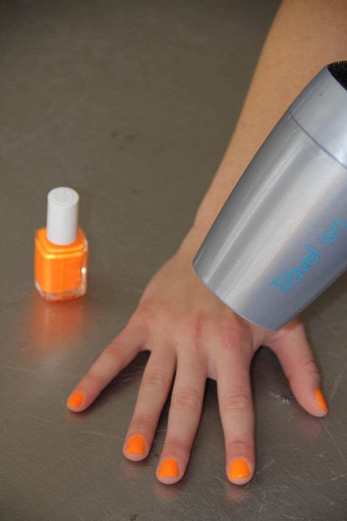 Avoid drying the nails with the dryer. Alternatively, you can dip your nail in ice water for a minute or two, which also aids drying.