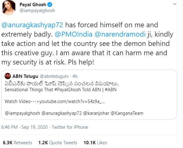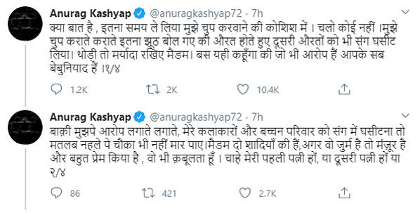 Payal Ghosh had said in an interview to a news channel that Anurag Kashyap had called her at his house and forced on her. Anurag Kashyap had tried to open my clothes.