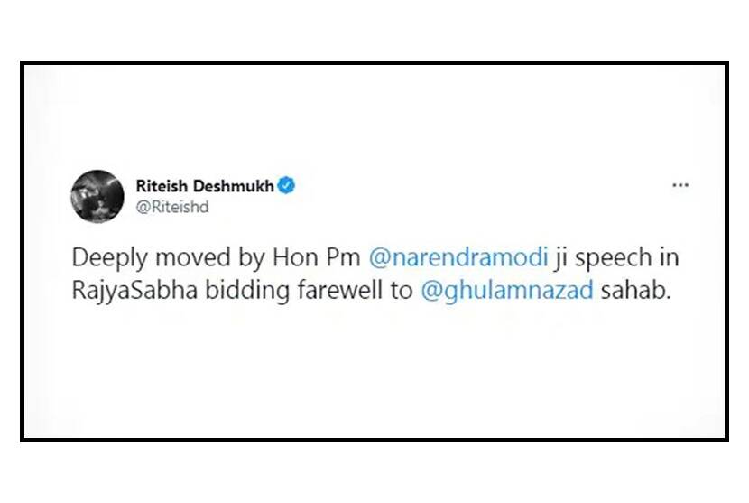 The country saw a different picture in the Rajya Sabha yesterday. There is an emotional atmosphere on various issues where there is a picture of confusion being reached by reaching the chair of the Speaker. After Prime Minister Narendra Modi’s speech, the House was found to be stunned. From the speech of the Prime Minister, the House saw the gentle man among Ghulam Nabi Azad. Prime Minister Modi also shed tears. After this speech of Modi, it is seen that there is a discussion about that tragic incident. Meanwhile, a tweet by actor Riteish Deshmukh is under discussion.