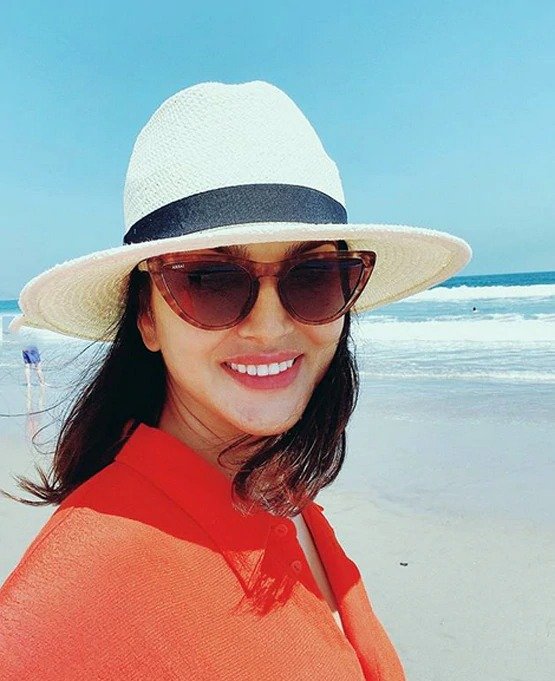 In the pictures, the actress looks stunning in an orange-colored beach dress. Wearing a hat with sunglasses she looks absolutely cool. The actress is currently in Los Angeles California.