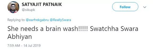 As soon as this tweet by Swara uploaded on Twitter, social media users started trolling her brutally. While some called it a publicity stunt, others called her a “Muslim terrorist”. See other reactions: