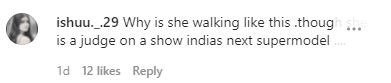 Here’s some comments dropped on the post. One wrote, “Ye koinsi chalne ki style hai Bhai,” while another user wrote, “Why is she walking in such a weird manner?” A user also commented saying, “Why is she walking like this .though she is a judge on a show indias next supermodel” and someone also asked”Iske pair me Kya dikat hai.”