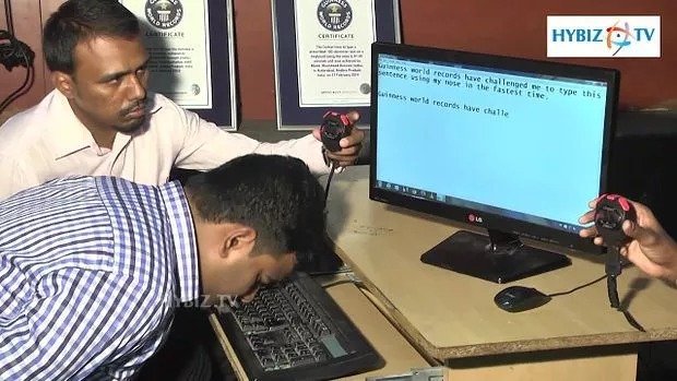 Typing with the nose may sound strange but its record has also been made. Khurshid Hussain of Hyderabad registered his name in the Guinness World Records by typing the fastest nose in the world. Khurshid typed 103 characters with his nose in 47 seconds.