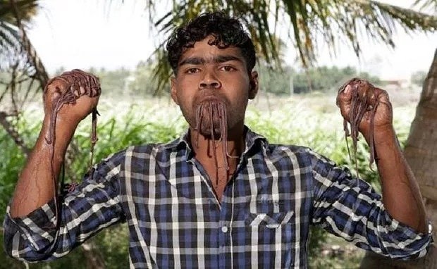 It may sound a bit strange, but yes, this record has also been made and this record has been made by John Peter of Coimbatore. John eats earthworm and dosa for breakfast, lentils and moth in the afternoon, and 10-20 lizards at night.