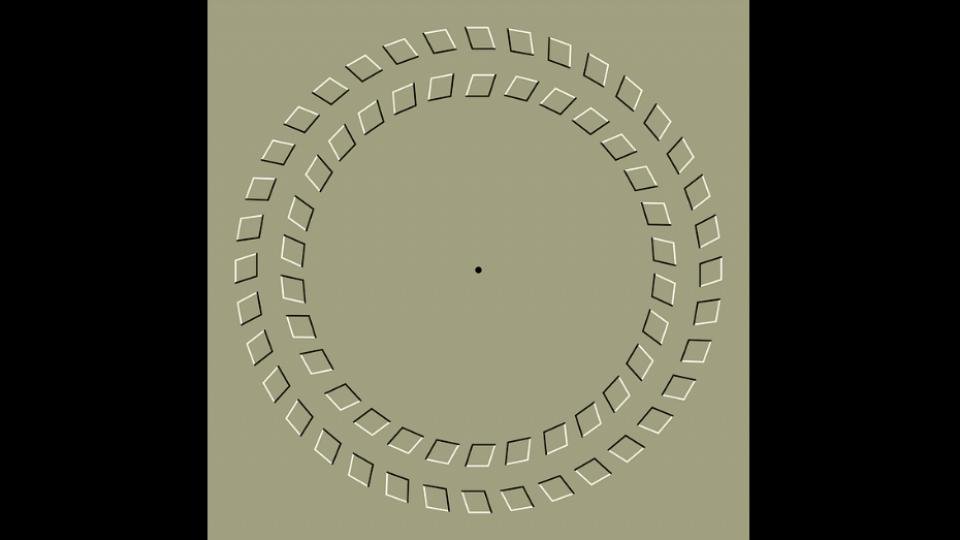 Fixing the dot in the center gives the impression that the two circles around it move.