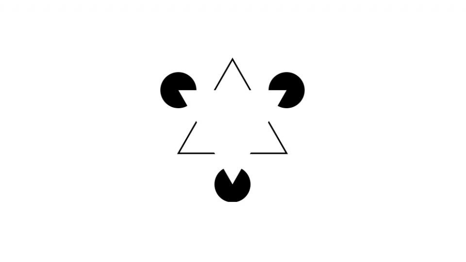 The arrangement of all the elements is such that it looks like a white triangle stands out. This effect is called Kanizsa Pattern.