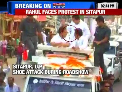 A shoe was hurled towards Congress vice-president Rahul Gandhi by a youth while he was addressing an election rally in Dehradun in January 2012.