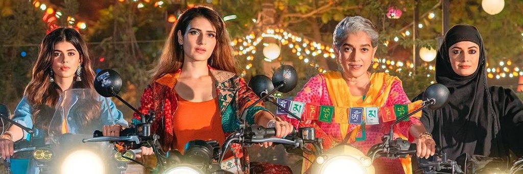 Dhak Dhak tells the story of four women who, riding motorbikes from New Delhi to the highest mountain pass in Ladakh, India, set out on a life-changing adventure. Starring in the movie are Fatima Sana Shaikh, Sanjana Sanghi, Dia Mirza, and Ratna Pathak Shah.