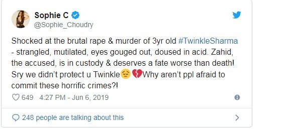Murder of Twinkle Sharma has shocked the whole country as well as the Bollywood stars. Many of them took to social media to condemn the heinous crime. Actors like Koena Mitra gave it to the communal angle. Check out the tweets: