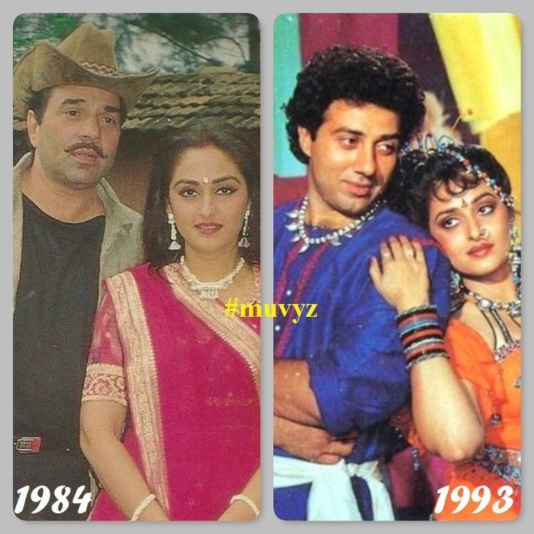 Jaya Prada did films Farishtey and Shehzaade opposite Dharmendra in which she played his love interest. She also gave romantic scenes with his son Sunny Deol in the film Veerta.