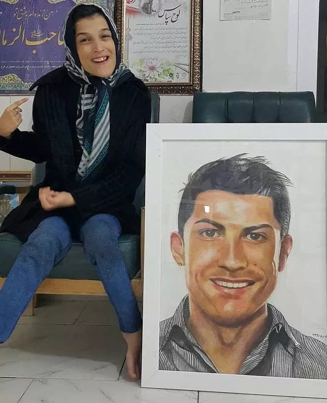 A portrait of Cristiano Ronaldo is doing the rounds on social media. Interesting thing is that the painting was crafted by an Iranian artist Fateme Hamami who uses her big toe to sketch and draw life-like portraits of famous celebrities.