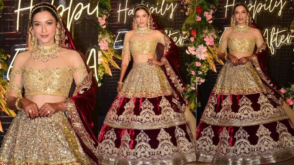 Gauahar Khan and Zaid Darbar who were buzzing on the internet for their wedding for quite a while finally got married on the 25th of December. The photos of their Nikaah ceremony reception are out now on social media. Since it was a special day for them they were seen dressed in elegant attire. Gauahar, wore traditional kurta-shararas for her wedding and chose a bold gold and maroon lehenga for the reception. While Zaid on the other side complemented her in a black and gold sherwani paired with a matching shawl. Gauahar’s sister Nigaar Khan wore a green and golden kurta-sharara. Well we should say that not just Nigar but Zaid’s entire family dressed perfectly in traditional wear for the event.