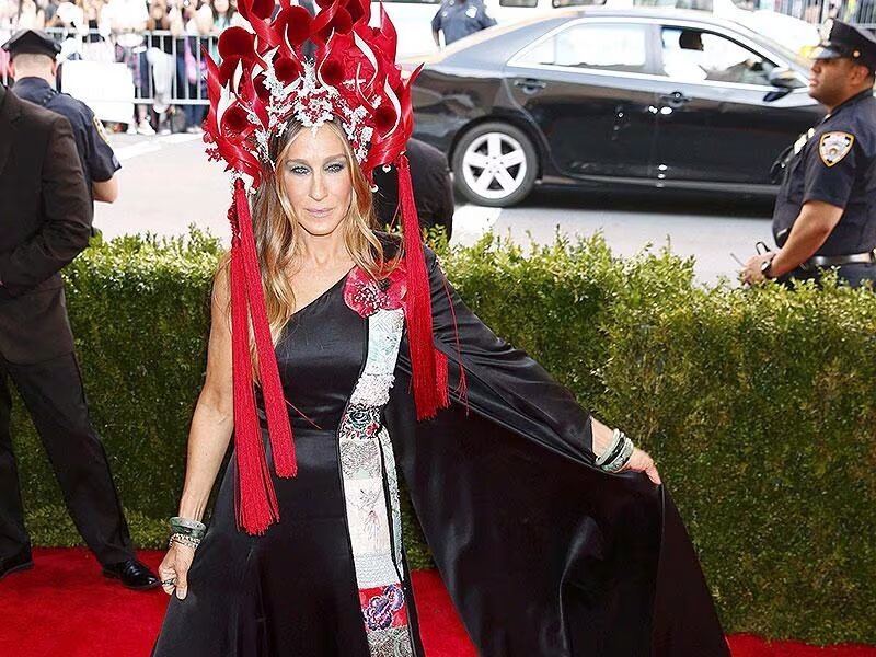 At the 2015 Met Gala, Sarah Jessica Parker wore a Philip Treacy headpiece with a red silk mohawk that resembled a flame, in keeping with the event’s “China: Through the Looking Glass” theme. Parker’s outfit drew conflicting reviews from fashion experts and social media users; some praised her for making a daring choice in clothing, while others questioned the headdress’s appropriateness and its cultural importance. Nevertheless, the headpiece turned into one of the most discussed and enduring aspects of the occasion.