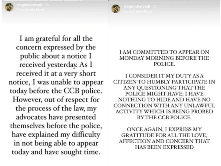 On September 3, Ragini was issued a notice to appear to the CCB. But she sent her lawyer and herself was absent. Ragini had stated that the reason for absence was to meet the summons on short notice. Have a look on her statement: