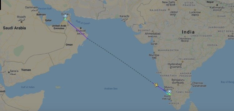 According to the information the aircraft departed from Dubai at 14:14 this afternoon. With the travel time duration of 3-hours and 56-minutes. The aircraft attempted its landing at 19:40 but flight-tracking service lost coverage of the aircraft just prior to its landing and ultimately skidded off the runway due to rains from the monsoon season.
