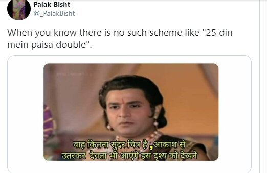 When you know the ‘25 din mein paisa double scheme’ 😜😂😂 pic.twitter.com/8UUy6dR5Ml