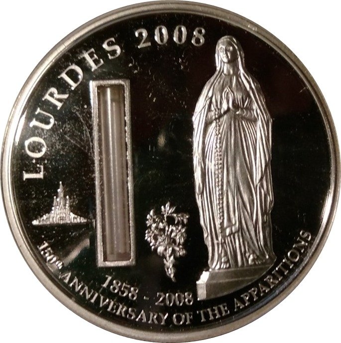 Somewhere around a total of 25 thousand of these coins were issued. The coin contains an embedded vessel filled with holy water.