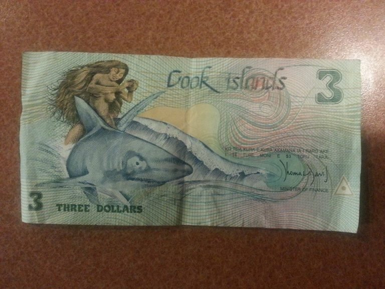 This bill depicts a naked woman holding a coconut and riding a shark.