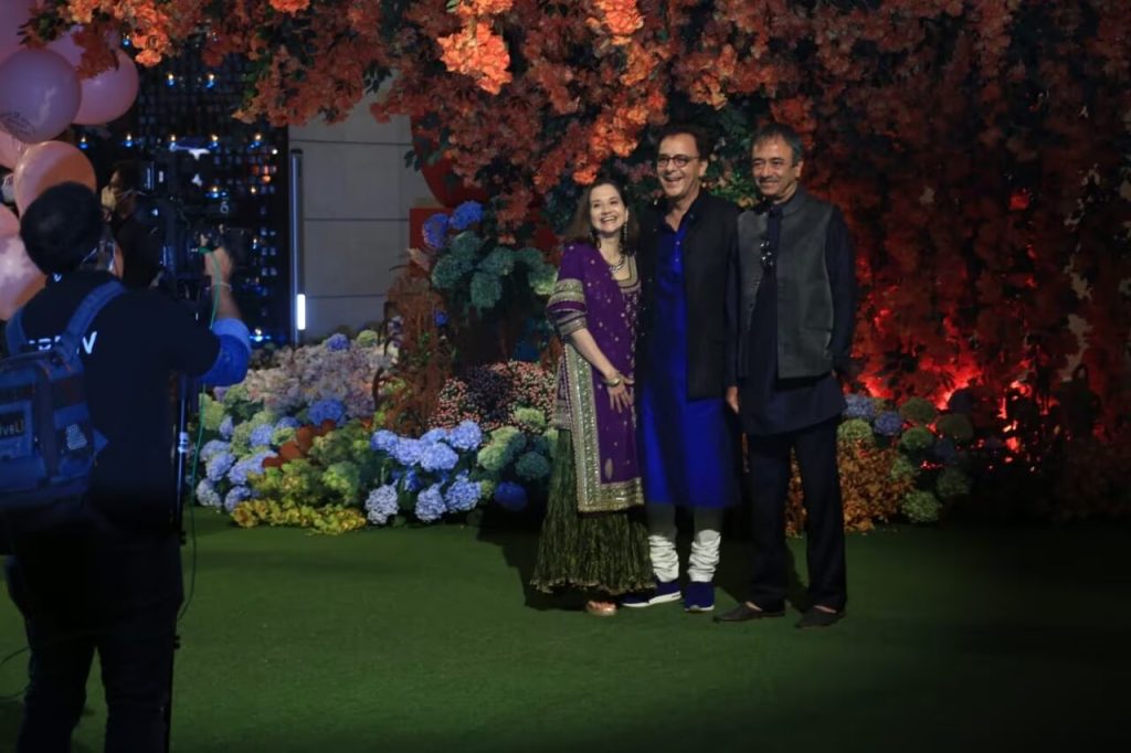 Vidhu Chopra and Anupama Chopra posed for the camera while Rajkumar Hirani joined them