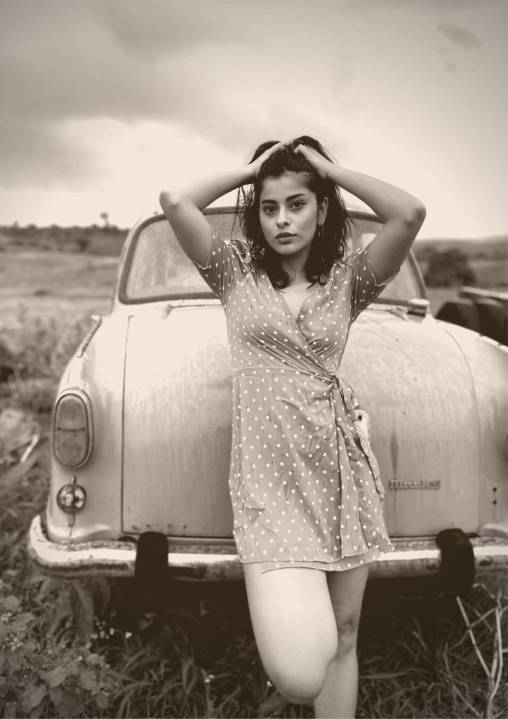 Anisha posed in the backdrop of the grunge look of old abandoned cars as the subdued natural light just turned out to be perfect. The mood was relaxed and the results cool… with Anisha donning a dreamy look which kinda went perfect with the location and weather. Check out the pics for yourself.