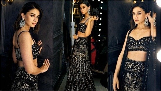 Alia Bhatt opted for a black and beige lehenga embellished with sequins. She paired the lehenga with big statement earrings, giving off a chic bridesmaid vibe. Alia’s dress for the event was both elegant and glamorous.