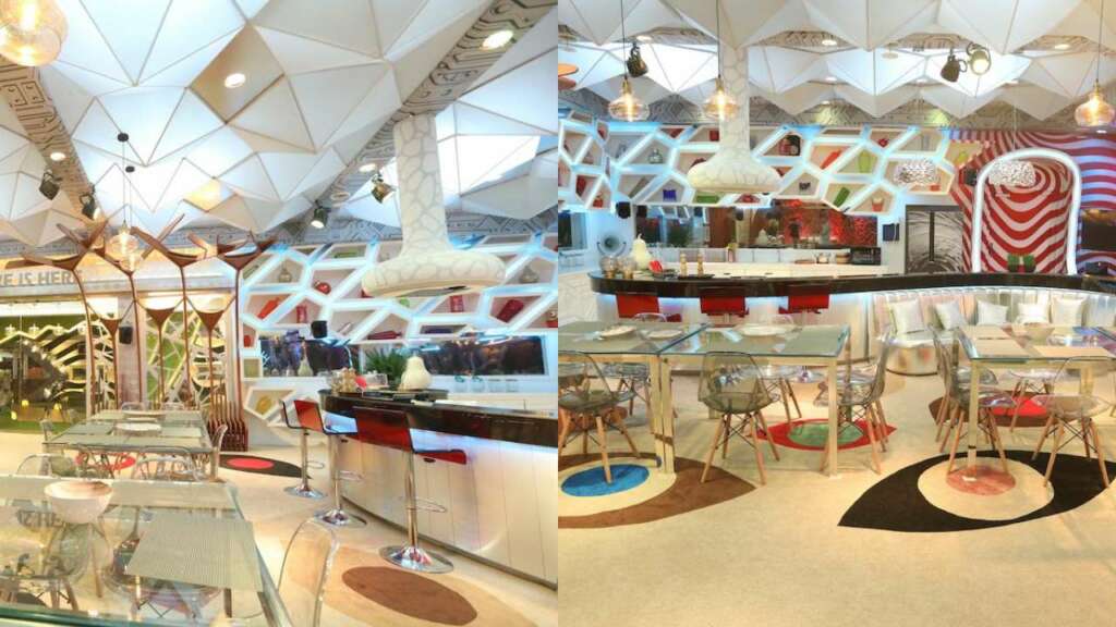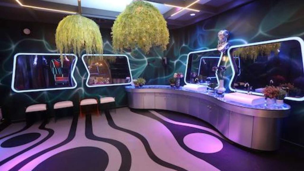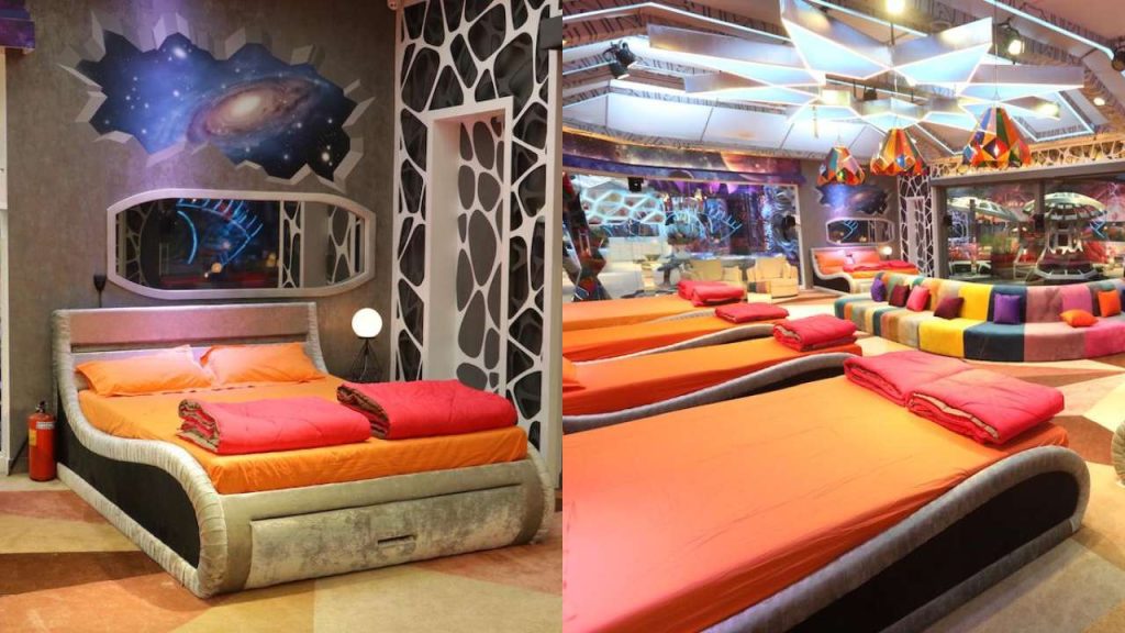The bedroom is a mix of funky bright colors and metallic hues. Since the bedroom has often been a safe zone for the contestants where they relax. The beds have been designed to invoke coziness and forget all their worries. A huge metallic eye is put up on a wall that will the main attraction of the bedroom area.
