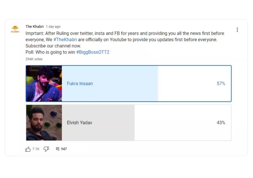 The Khabri organised a vote between Abhishek Malhan and Elvish Yadav, two competitors who are now ruling the trends. Additionally, you can view the voter lead.