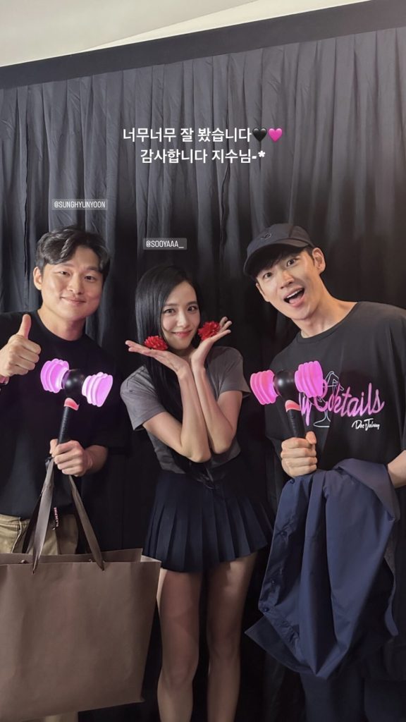 Along with them, additional performers include Kim Ji Yeon, aka Bona, Kim Chae-won of Le Sserafim, Huh Yun-jin, and Kim Min Ju of Iz*One. Along with Jisoo, actors Lee Je Hoon and writer-director Yoon Sung Hyun posed for photos. Shin Seul Ki from Single’s Inferno also joined the girls after the concert.