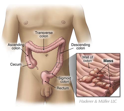 Bowel cancer and rectal cancer can occur simultaneously, it is called colorectal cancer. Rectal cancer originates in the rectum, the part of the large intestine closest to the anus. Most cases of colorectal cancer begin as small, cancer-free clusters of cells called adenomatous polyps. Over time some of these polyps become colorectal cancer. Polyps are often small, and symptoms of their occurrence are not visible. Therefore, doctors recommend to have regular screening tests. These tests identify polyps before they become colon cancer and help prevent colorectal cancer.