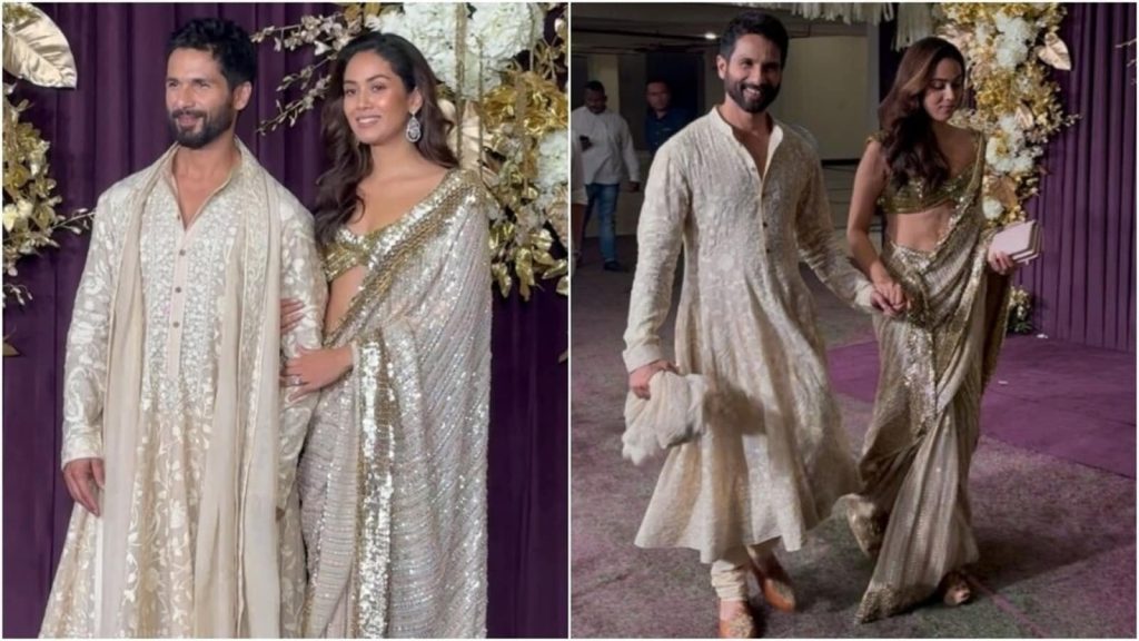 One more couple that was noticed was Shahid Kapoor with his beautiful wife Mira Rajput. Shahid, who is popular for his recent movie Kabir Singh, opted for the formal ethnic look with a stylish white sherwani. Mira too looked fabulous in a cream sequin saree with a golden border and the couple looked amazing.
