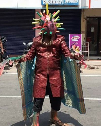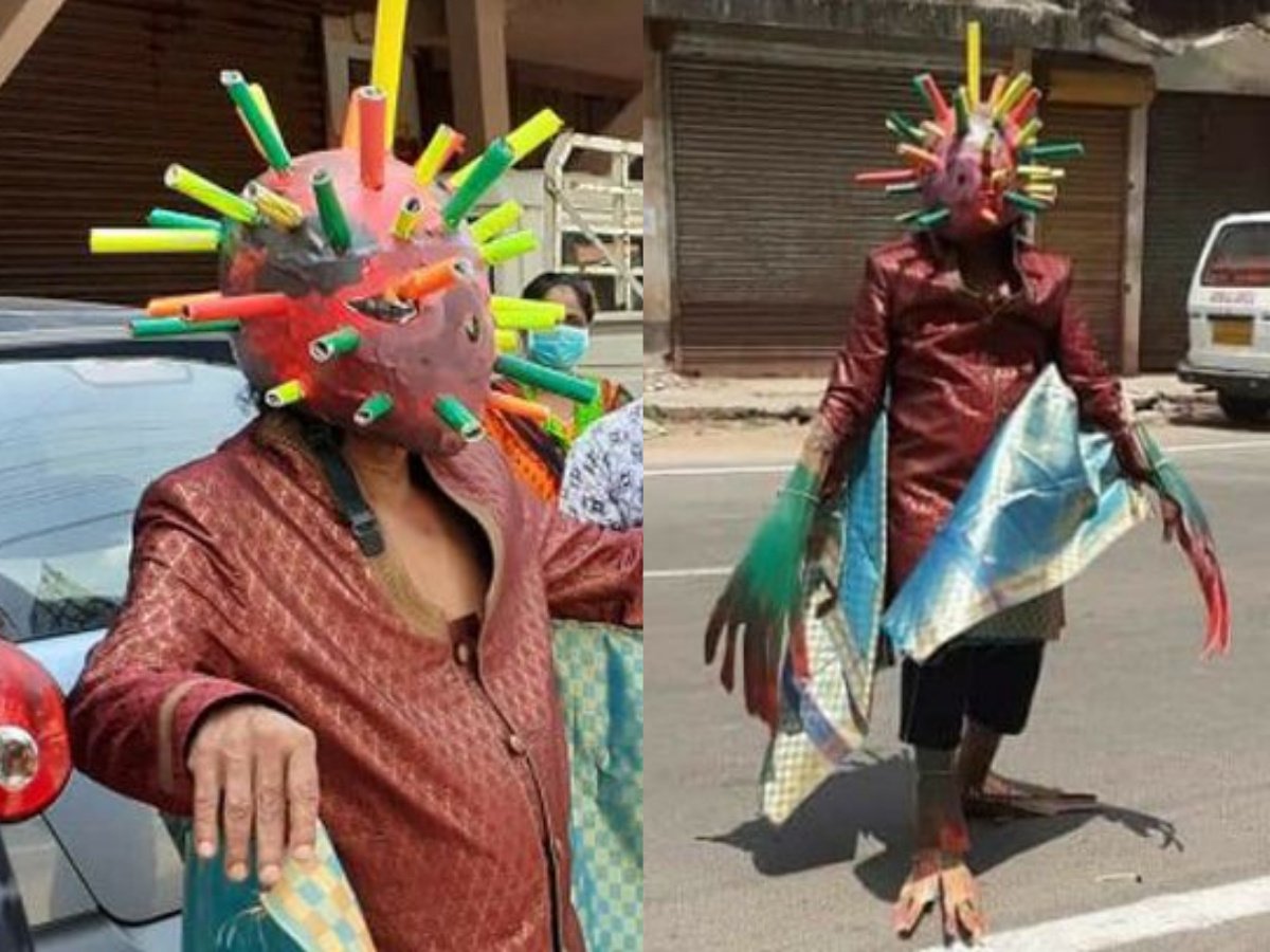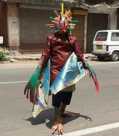 According to the reports, Nagarika Samiti chief convener Nithyananda Olakadu from Udupi, Karnataka is taking coronavirus awareness to a whole new level. This man came out on the roads dressed in the ghastly clothing of an imaginary corona demon.