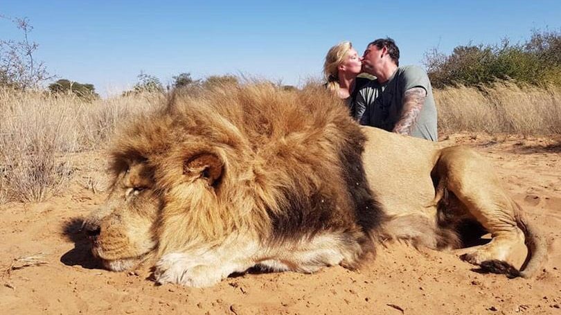 Couple Kissing Over A Dead Lion They Killed is Receiving a Backlash