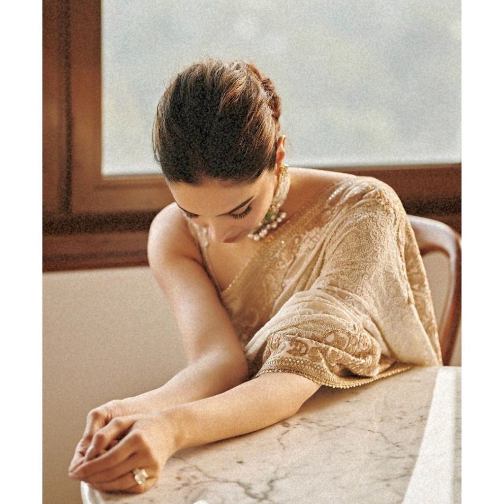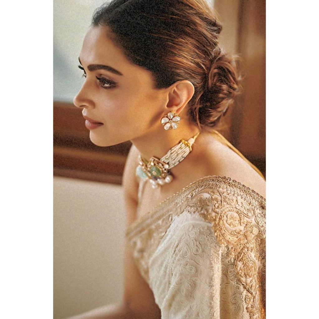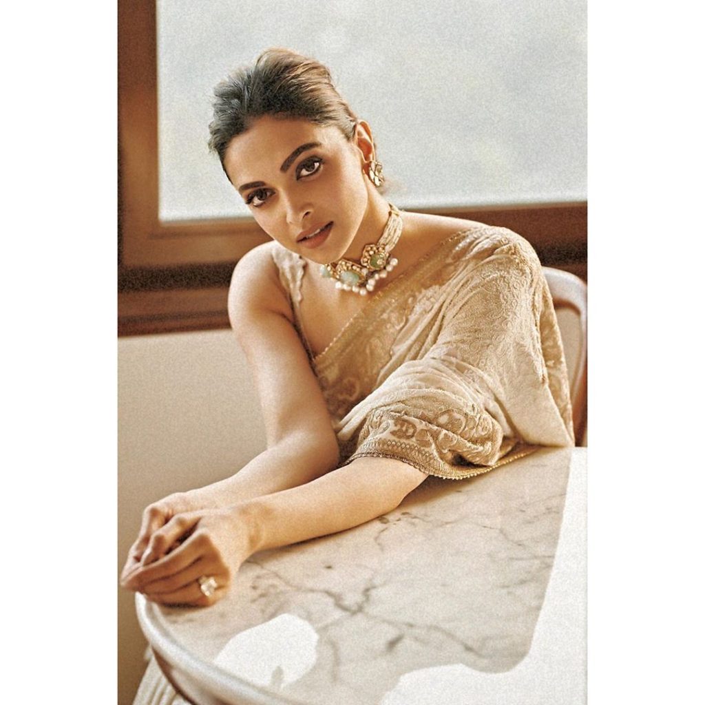 Deepika Padukone is giving the definition to royalty and her new pictures from a recent photoshoot are proving just the same. In her latest photoshoot, Deepika is stealing numerous hearts after draping herself in the elegant ensemble elegantly. She has accentuated her look by accessorizing it with an elegant choker necklace, which had stunning pearls and stones embellished in it and floral cut earrings.