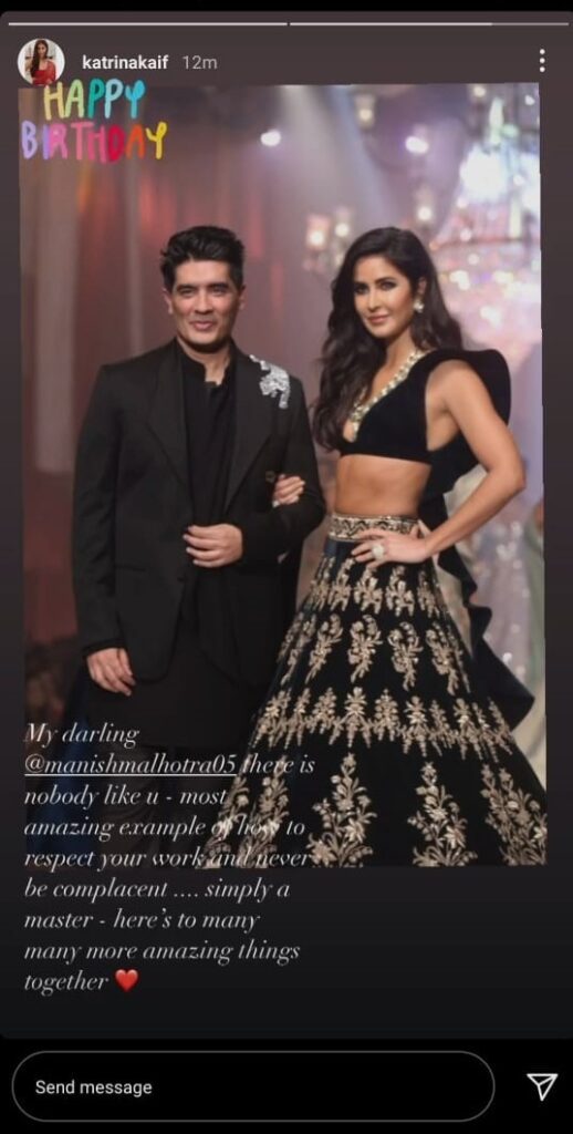 But the most special post was from Katrina who posted a picture with him and captioned it. “My darling Manish Malhotra there is nobody like you. A most amazing example of how to respect the work and never be complacent… simply a master- here’s to many many more amazing things together.”