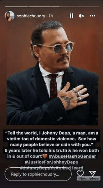 Not long after the verdict was dropped, Depp’s fans were seen expressing their happiness via social media. Bollywood celebrities Disha Patani and Sophie Choudry too posted on the side of Depp. Sophie took to her Instagram story and wrote,  “Tell the world, I Johnny Depp, a man, am a victim too of domestic violence. See how many people believe or side with you.” 6 years later he told his truth & he won both in and out of court. #AbuseHasNoGender #JusticeForJohnnyDepp #JohnnyDeppVsAmberHeard.”