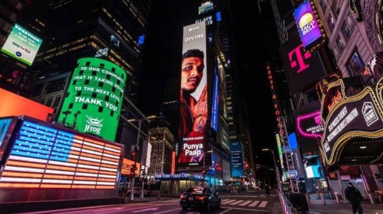 Rapper Divine, who released his album Punya Paap on December 4, became the first Indian rapper to appear on the billboard in Times Square, New York. Divine’s album Punya Paap has been streamed over 10 million times and is claimed to have been ranked number one in all genres on Apple Music India’s chart.