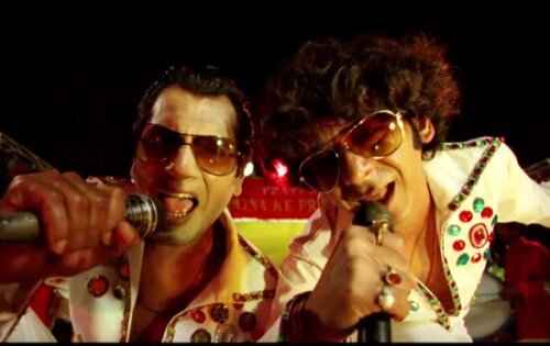 In the main scene of the song Emotional Atyachar, 2 orchestra singers are seen singing on stage. The two actors, dressed in identical attire, looked fun singing with great vigor and fun.
