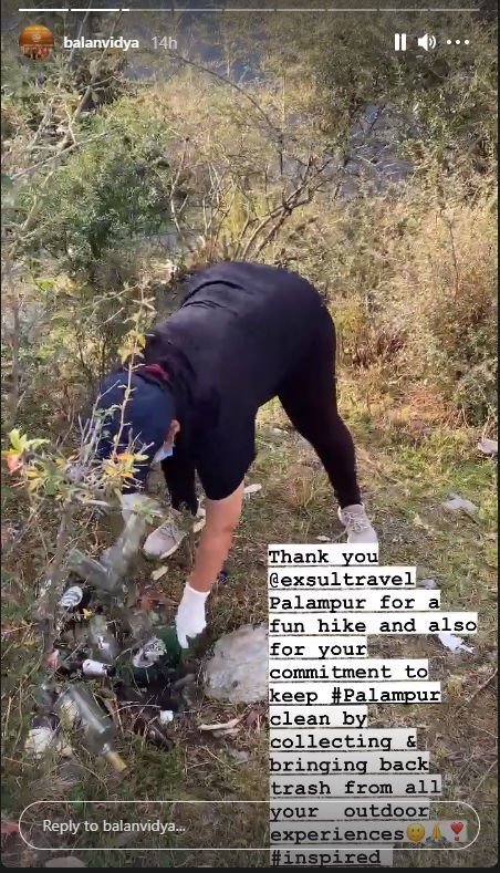In addition to enjoying holidays in Palampur, Vidya also took part in the cleanliness drive. She also worked to clean up the area of her neighborhood, a video of which she shared on his Instagram Story.