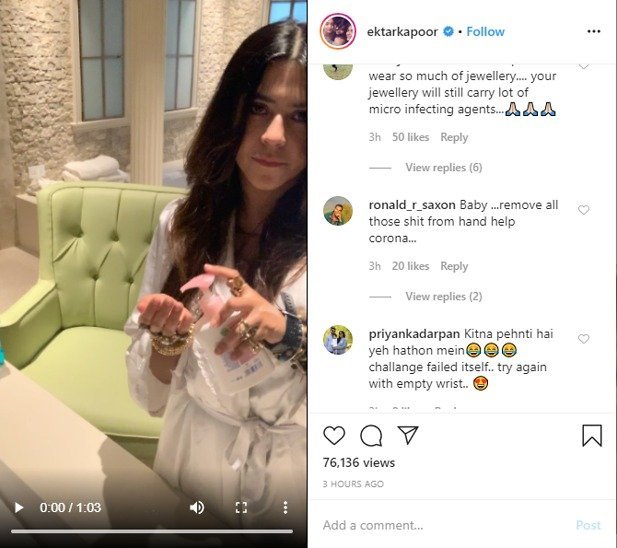 Ekta has taken more than a minute to do this 20-second challenge. In this video of unity, people have advised her to remove the jewelry and wash her hands. At the same time, some say that there may be micro germs in her jewelry too.
