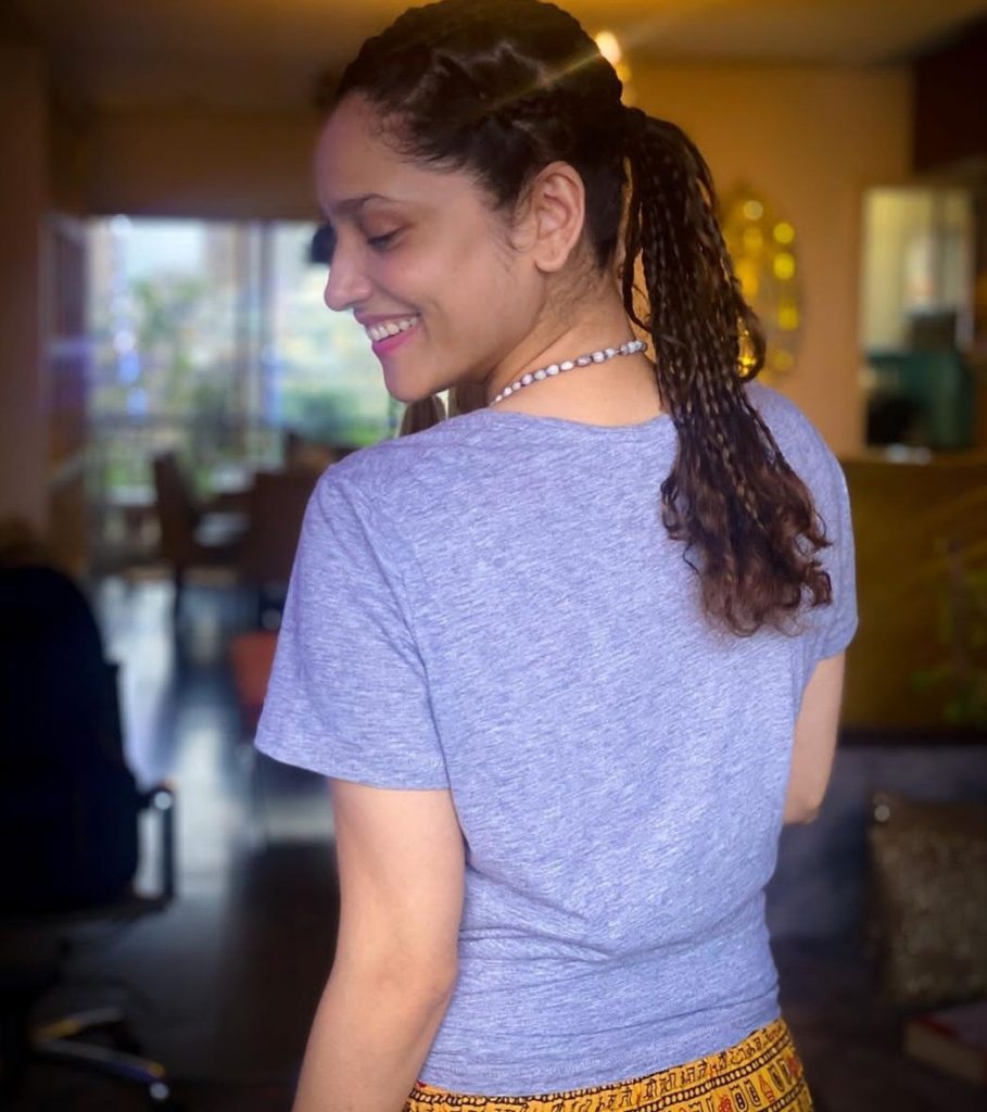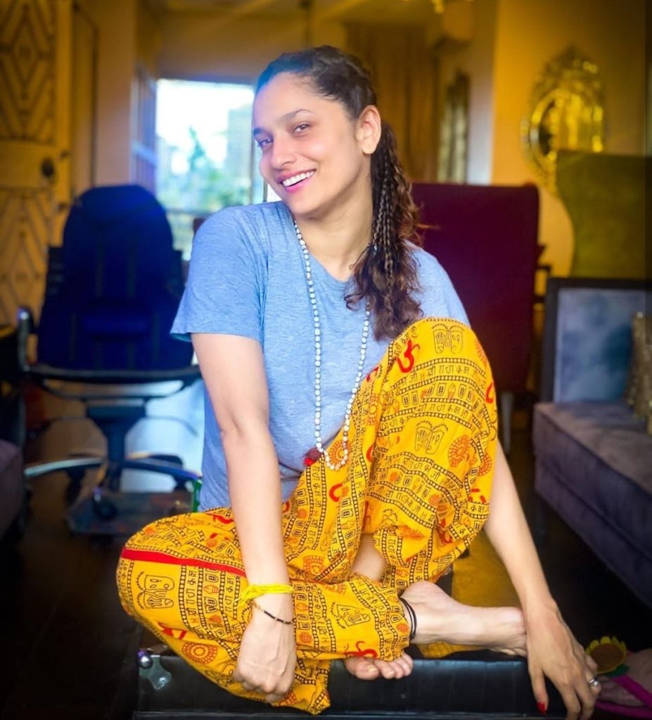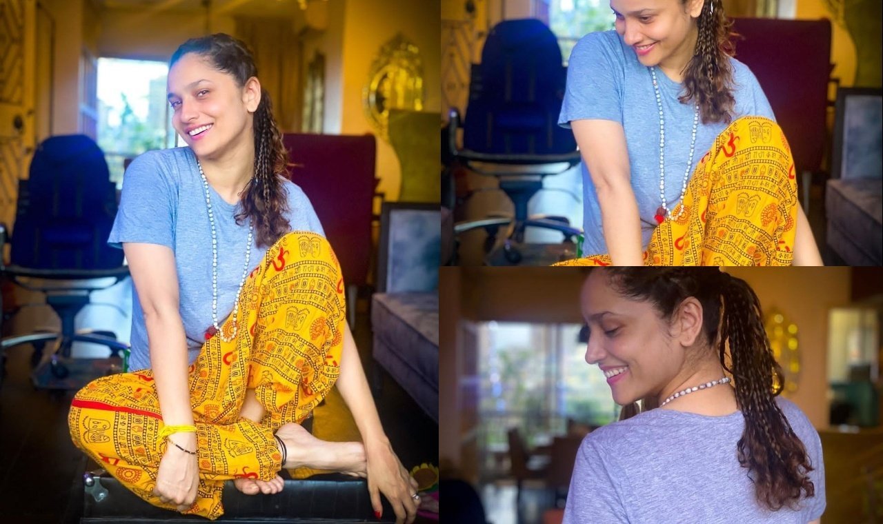 Actually, actress Ankita Lokhande has recently shared some photos from her official Insta account, fans are criticizing her a lot after seeing these pictures. It can be seen in these pictures that Ankita is wearing a blue half sleeve tshirt and yellow pajama. She has done a very different hairstyle with this dress. This hairstyle is made by her mother. Well, she is facing a lot of criticism on this picture because of something written on the yellow pajama she is wearing.