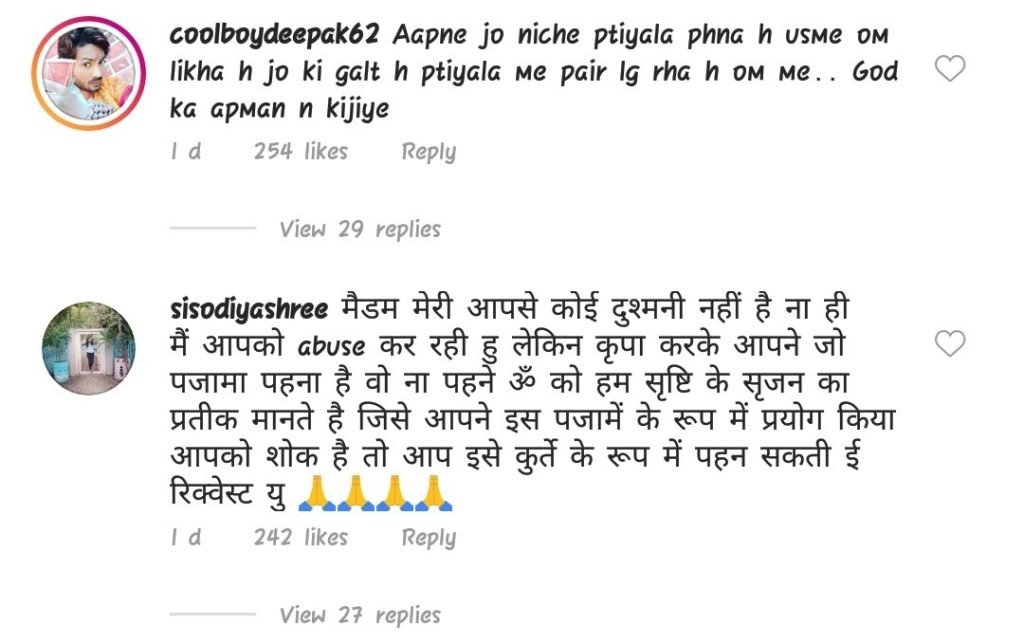 Many social media users are expressing their anger at them due to her pajamas. Not only this, some users even gave the advice to Ankita. Commenting on this picture of Ankita, a user wrote, the trouser you are wearing is not appropriate, OM is written on it and it is being touched with your feet, it is very wrong to use the name and sign of God in this way. Another user wrote in the comments section, please do not wear such clothes, Respect the god.