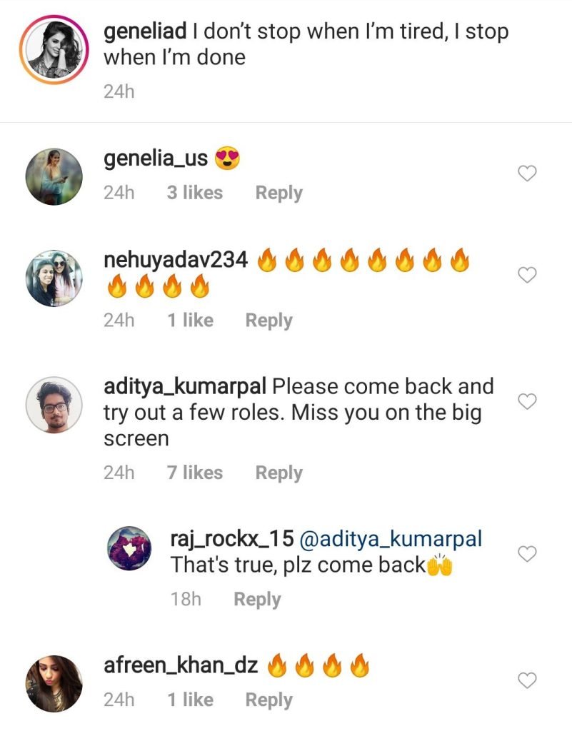 Here are the comments of her fans which shows how badly they want the same charming and bubbly girl to return in the films. However, Genelia seems to have set her priorities. She might not return soon. She manages really well with her loving husband Riteish Deshmukh and her two kids Riaan and Rahyl.