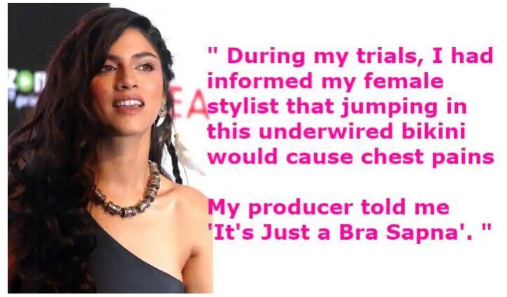 “I had to wear a bikini for a song and dance sequence. During my trials, I had informed my stylist (female) that jumping around in this underwired bikini for more than 7 hours would eventually cause me severe chest pains and if we could just remove the underwire I would feel more comfortable and pain-free. I was forced to wear this bikini as is, as my male director insisted it stay this way. I went ahead and did as I was told in the fear of being dropped/blacklisted from this production house. I woke up in the middle of my sleep due to these agonising chest pains. I will never forget how I resorted to screaming into my pillow.”