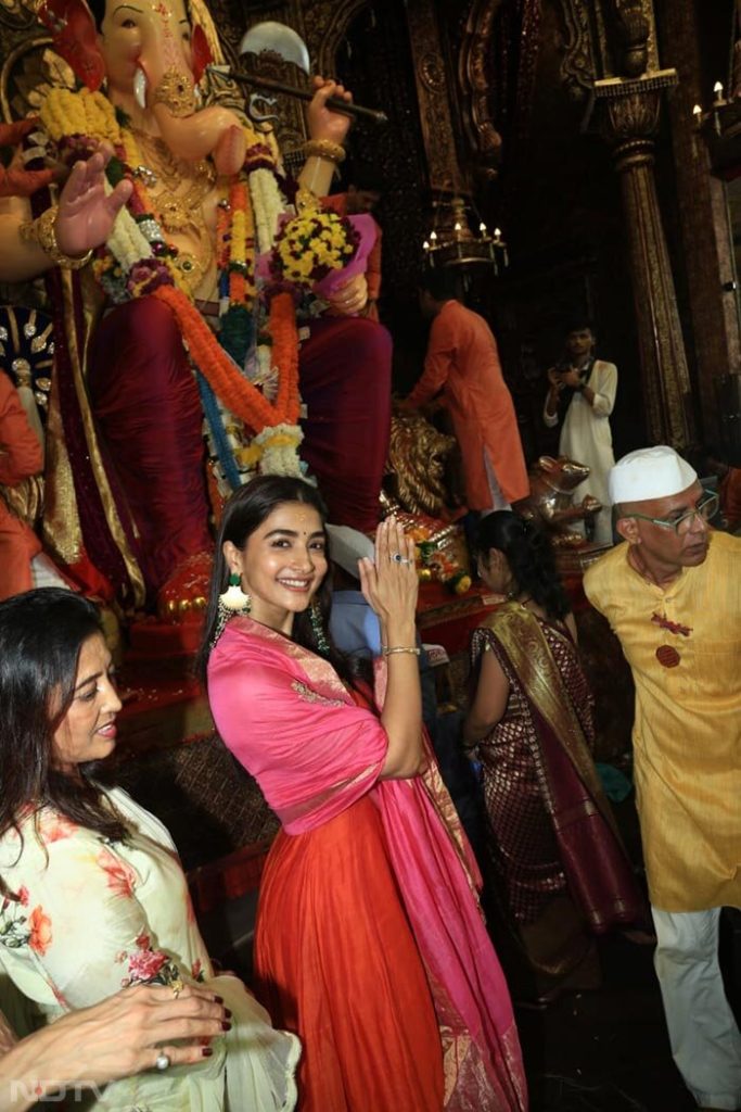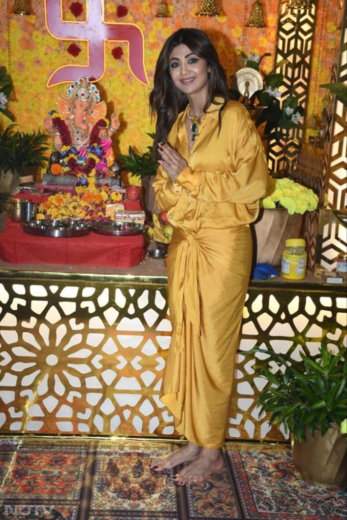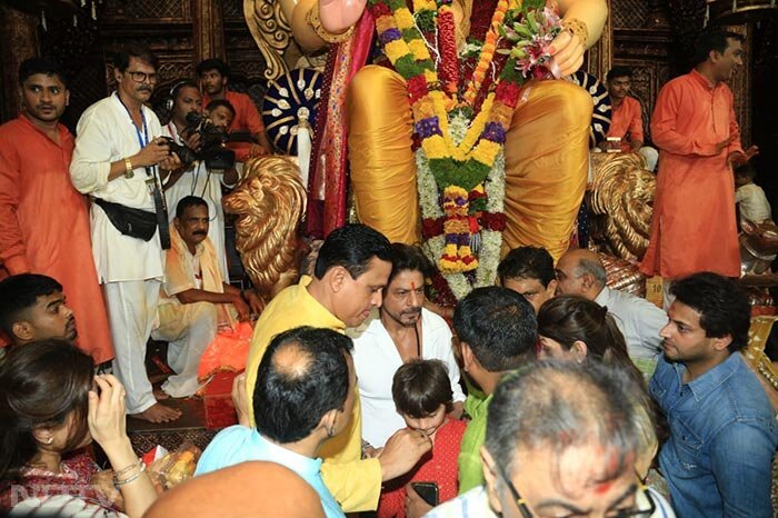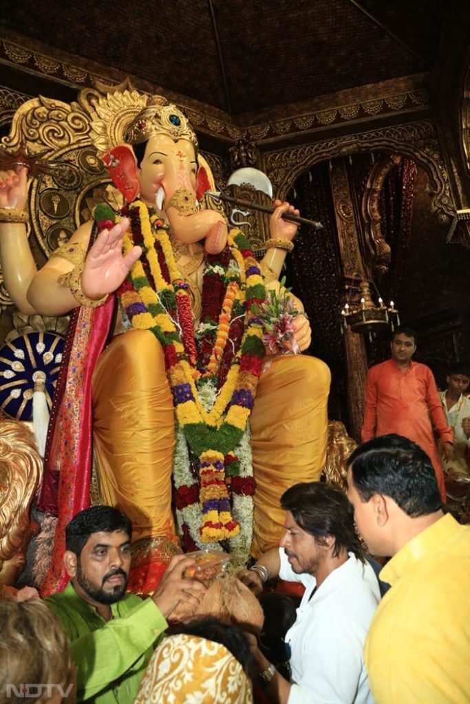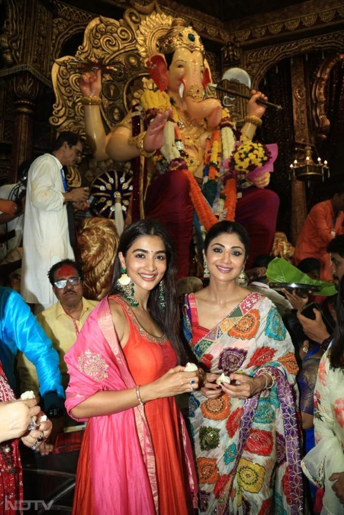 Here is a compilation of pictures from Mumbai’s Ganesh Chaturthi celebrations with celebrities including Shilpa Shetty, Pooja Hegde, Shah Rukh Khan, and son AbRam.