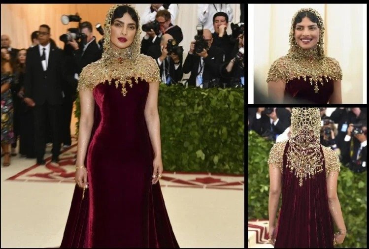 She again grabbed attention when she was seen with her heavily designed look at the Met Gala, It was a Ralph Lauren creation, Which was a velvet gown with a gold chain design from head to neck. Although it was a designer piece, it didn’t go down well with the fans.