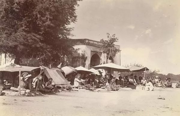 Fakir sitting outside a temple in Jamlapur Ahmedabad-1880…