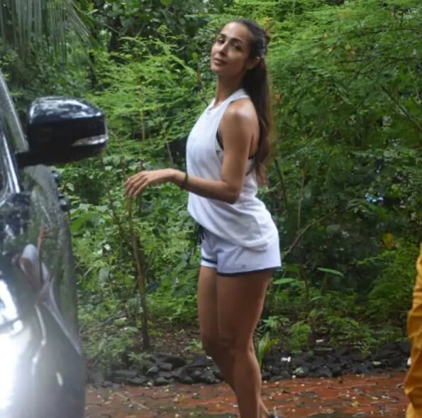 What Malaika is exactly doing here? She seems like a bunny hopping in the middle of the air. To top it up, she was also donning a white outfit.