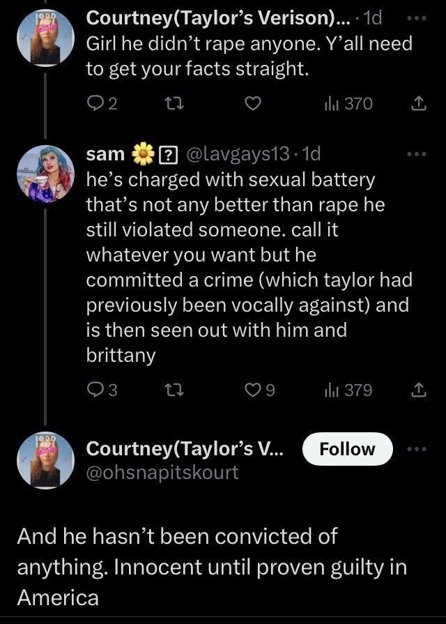 “I love Taylor and will always back her up but not when she’s wrong. She needs to stay the hell away from the Mahomes family especially Jackson. You can’t be outspoken about sexual assault and then hang out with someone who committed sexual assault and their supporters,” penned a fan on X.