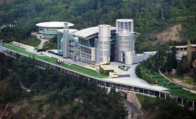 The futuristic residence of Bidzina Ivanishvili is a unique architectural complex on Mount Tabori in the historical area of Sololaki above the Tbilisi Botanical Garden. The complex consists of a luxurious business center, conference rooms, an indoor tennis court, a dance hall, a huge residential building designed by the famous Japanese architect Shina Takamatsu. The complex is estimated at $ 50 million.